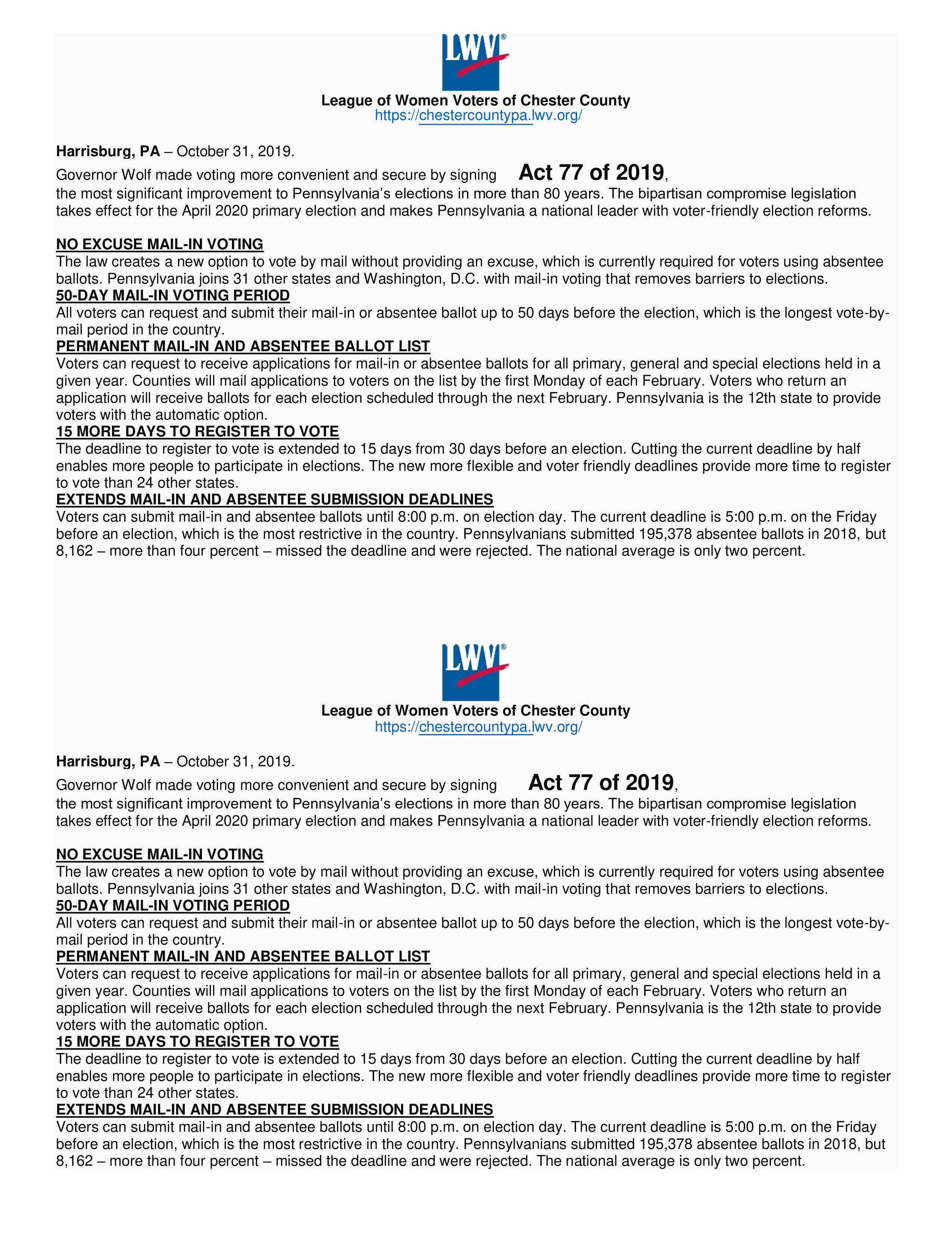 New Voting Policy Act 77