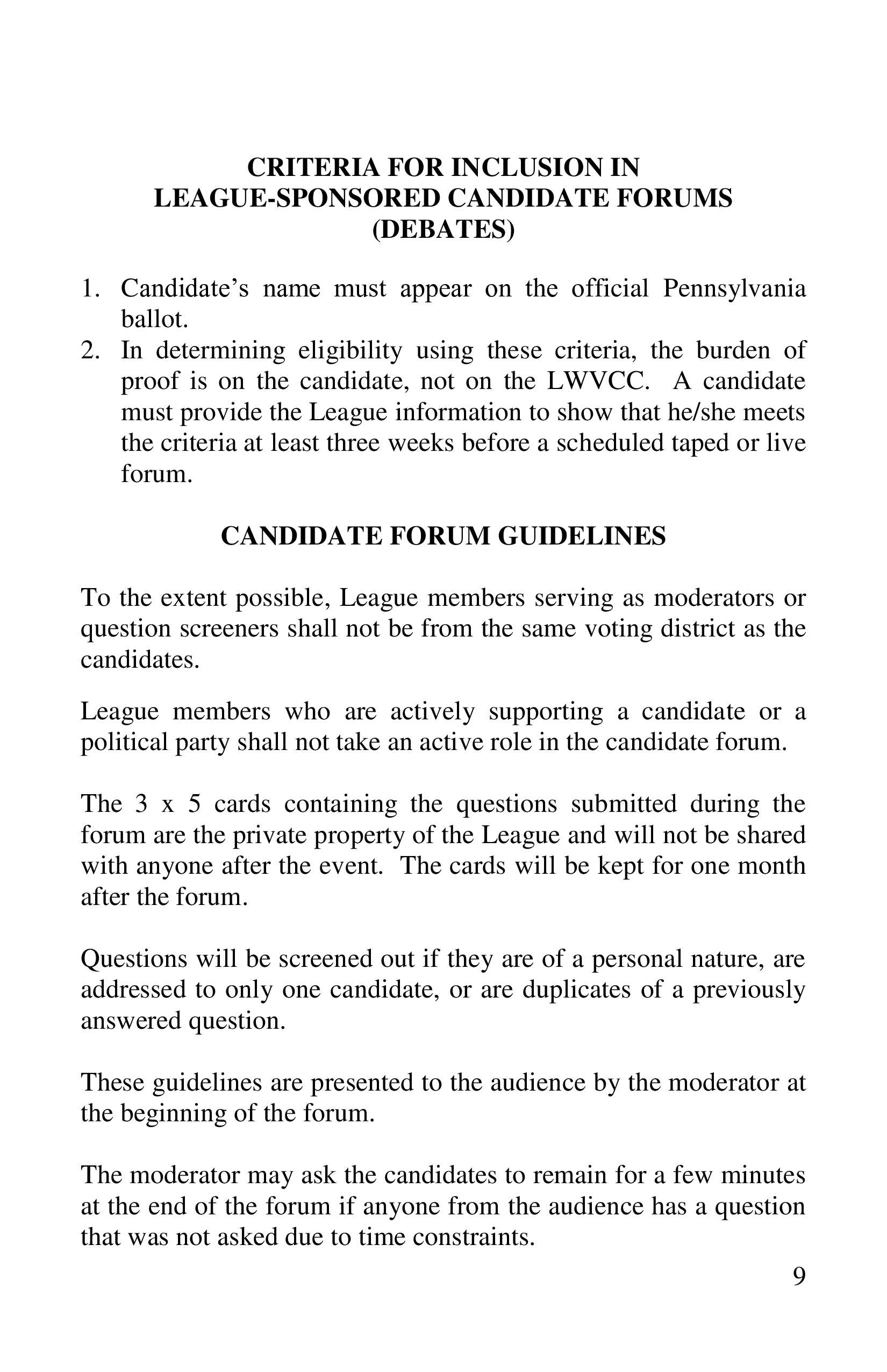 Candidate Forum Agreement